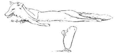 And he set into a gallop after Johnny-cake, who went on and on so fast that the wolf, too, saw there was no hope of overtaking him, and he, too, lay down to rest.