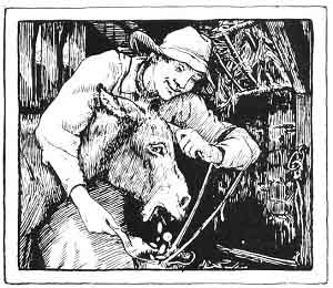 The lad was well pleased with the wage he had received, and away he rode till he reached an inn. There he ordered the best of everything, and when the innkeeper refused to serve him without being paid beforehand, the boy went off to the stable, pulled the ass's ears and obtained his pocket full of money. The host had watched all this through a crack in the door, and when night came on he put an ass of his own for the precious Neddy of the poor youth. So Jack, without knowing that any change had been made, rode away next morning to his father's house.