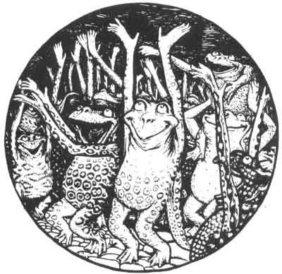Then he went into the house, and looked for the ball, but could not find it. Night came on and he heard bogles move in the courtyard; so he looked out o' the window, and the yard was full of them.