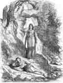 She was, however, often seen stealing down the pathway. that led to Nathan's Kieve; for by a strange fascination she was fond of going there alone; although it was in that spot she first received those impressions which now rendered her so melancholy and unhappy. At length Father Hilary saw something was the matter, and obtained from her a confession of the truth, but only in part told; for she confined herself to the statement of having wasted her time in wandering up to the waterfall in Nathan's Kieve, and being too late for the vespers. She blushed, but was so ashamed to confess how much she had been led astray, that she said not one word about the musician, his attire, or the music. But Father Hilary was quite sufficiently shocked by what she confessed, and imposed upon her a very severe penance, namely, that she should take the ten marks given to her by the Baron to buy a splendid dress to wear at a high festival to be held at the castle, and should expend the same in the purchase of