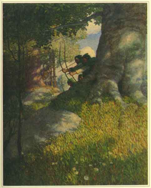 Soon as they had passed, the three slid quietly to the ground and thereafter betook themselves very cautiously through the wood. Robin determined to find Will soon as he might and lay his case before him. The outlaw would give him refuge, no doubt.