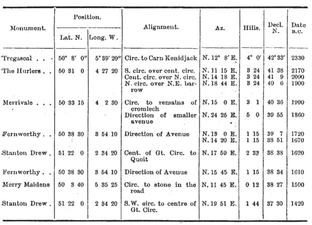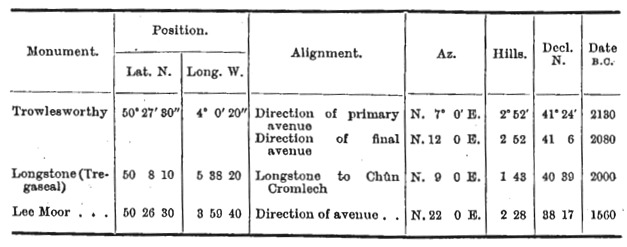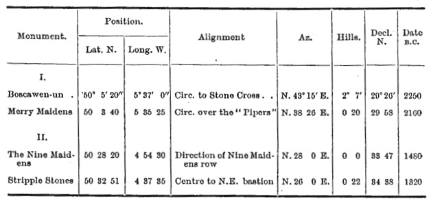 In my statement concerning them I will deal with the astronomical conditions for lat. 50° N., as it is in Cornwall that the evidence is most plentiful and conclusive.