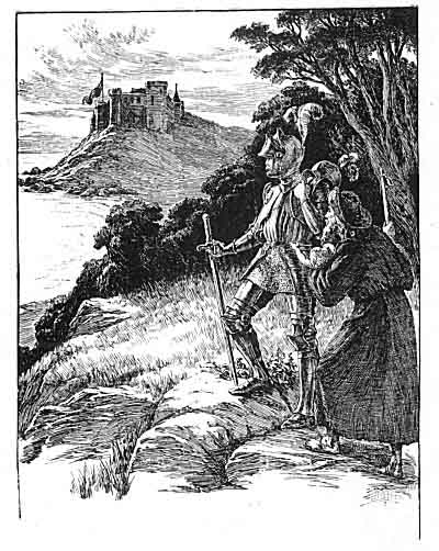After the burial of the Knight and the Lady, Sir Guyon gave the little baby into the care of the Palmer, and, lading himself with the heavy armour of the dead Sir Mordant, the two started again on their journey. But when they came to the place where Sir Guyon had left his steed, with its golden saddle and costly trappings, they found, to their surprise and vexation, that it had quite disappeared. They were obliged, therefore, to go forward on foot.