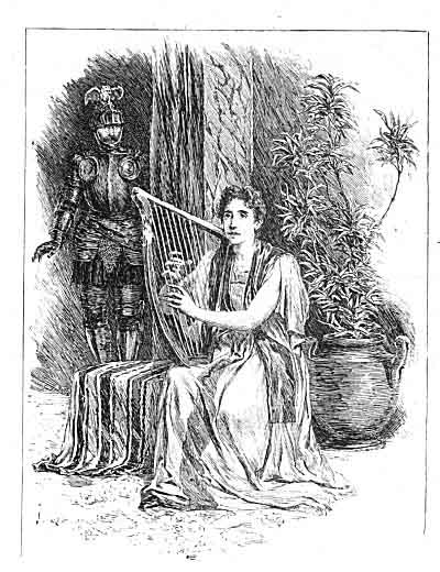 There in her delicious bower he found the fair Pana playing on a rote, complaining of her cruel lover, and singing all her sorrow in music. So sweet and lovely she seemed that the Prince was half-entranced, but wisely bethinking himself of what was right, he caught her unawares and held her captive.