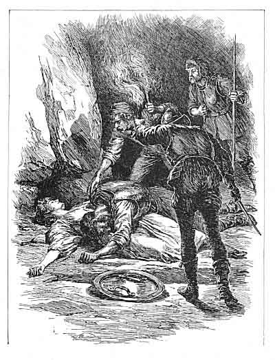With the death of the Captain the fray ceased, and the brigands, lighting fresh candles, made search to see who was slain, friends and foes. There they found their Captain cruelly killed, and, in his arms, the dying maiden; but, seeing that life still lingered, they busily applied all their skill to call her soul back to its home, and so well did they work that at last they restored her to life. This done, they placed her in charge of one of the brigands, who kept her in harsh and wretched thraldom, scarcely allowing her food or rest, or suffering her wounds to be properly tended.