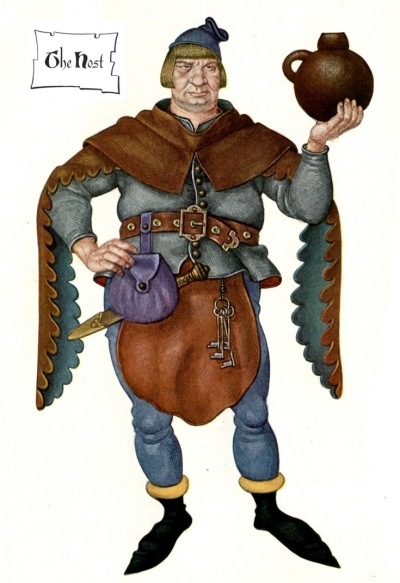 Our host set before us at supper an excellent entertainment; the food and the wine were of the best quality. He was a comely man, large in person, with sunken eyes, and worthy to have been created marshal in a hall. The whole ward of Cheap cannot boast a fairer citizen. Bold and manly, plain and sensible in speech, at the same time merry withal, he thus addressed the company after we had all paid our reckonings. "Now, my masters, permit me to welcome you heartily to your inn, for, by my truth, I have not this year seen so honourable a company as is