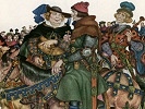 Alla instantly condemned the traitor knight to death, and Constance, notwithstanding all his untruth and perfidy, had pity on his fate. After this the king wedded Constance with great solemnity, and so this shining star of holiness became a queen. All rejoiced in the event but Donegild, the king's mother, a tyrannical and cruel woman: her wicked and proud heart was wrung at the thought of her son's marrying a creature whom no one knew, or whence she came, or what she was.