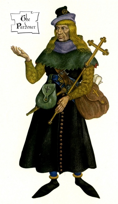 "By such tricks as these, my masters, have I, year by year, made a hundred marks ever since I followed the duty of a pardoner. I stand forth in my pulpit like any
