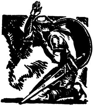 But his earls, all those trusted earls, save only that faithful and loving lord Wiglaf, were seized with a sudden fear, and-fled away into the darkness of the night and the shelter of the encircling forests. King Beowulf did not see their fleeing, as his eyes were upon the mouth of the barrow, and his ears were dimmed by the noise of the dragon's breathing and the swishswish of the angry body within the cave's fastness.