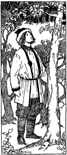 Some time after this the merchant's son happened to be hunting in a forest. The winds rose, the sky became clouded, the lightning flashed, the thunder roared loudly, and the rain fell in torrents. Ivan soon came near a large tree and saw a big nest in the branches. Four small birds were in the nest; they were quite alone, and neither father nor mother was there to protect them from the cold and wet. The good Ivan pitied them, climbed the tree and covered the little ones with his "kaftan," a long-skirted coat which the Russian peasants and merchants usually wear. The thunderstorm passed by and a big bird came flying and sat down on a branch near the nest and spoke very kindly to Ivan.