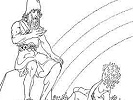 But the Gods knew that the net had touched something at the bottom. They fastened weights to it and they dragged the net through the River again. Loki knew that he might not escape it this time and he rose in the water and swam toward the sea. The Gods caught sight of him as he leaped over a waterfall. They followed him, dragging the net. Thor waded behind, ready to seize him should he turn back..