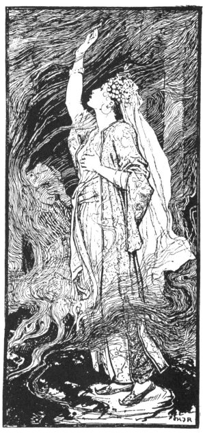 The Sultan, full of hope, sent orders at once that the princess was to set out as soon as possible, accompanied by her usual staff of attendants. When she arrived, she was so thickly veiled that the dervish could not see her face, but he desired a brazier to be held over her head, and laid the seven hairs on the burning coals. The instant they were consumed, terrific cries were heard, but no one could tell from whom they proceeded. Only the dervish guessed that they were uttered by Maimoum the son of Dimdim, who felt the princess escaping him.