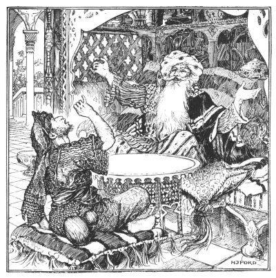 "Never mind my stories for the present," replied the barber, "but will your Highness graciously be pleased to explain why this Jew, this Christian, and this Mussulman, as well as this dead body, are all here?"