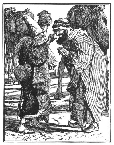 I was a quick runner, and it did not take me very long to come up with him. "My brother," I exclaimed, as soon as I could speak, "almost at the moment of our leave-taking, a reflection occurred to me, which is perhaps new to you. You are a dervish by profession, and live a very quiet life, only caring to do good, and careless of the things of this world. You do not realise the burden that you lay upon yourself, when you gather into your hands such great wealth, besides the fact that no one, who is not accustomed to camels from his birth, can ever manage the stubborn beasts. If you are wise, you will not encumber yourself with more than thirty, and you will find those trouble enough."
