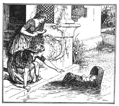The following year another prince was born and sent adrift, but happily for the baby, the intendant of the gardens again was walking by the canal, and carried it home as before.