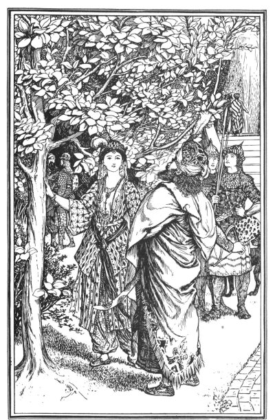 So saying the princess mounted her horse, and, declining to allow even Prince Bahman to carry the cage with the Talking Bird, she entrusted him with the branch of the Singing Tree, while Prince Perviz took care of the flask containing the Golden Water.