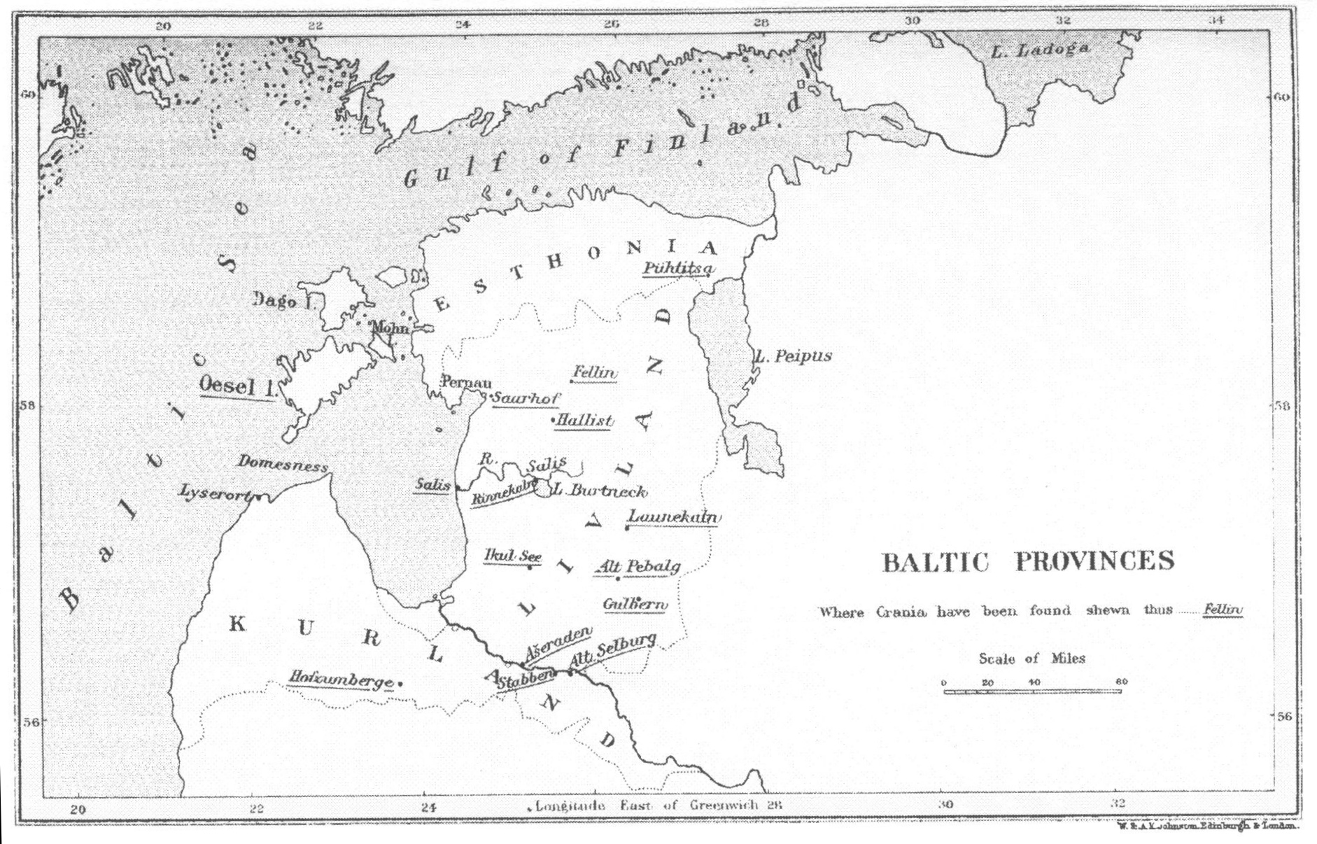 2. The Baltic Provinces, showing where Crania have been discovered.