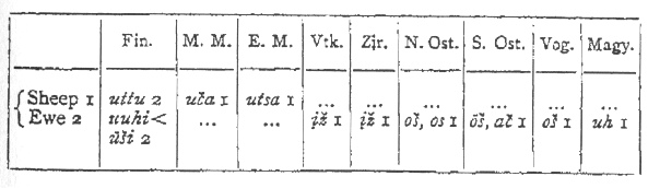 In the above equations, though four of the words for father-in-law are used in the double sense, yet to the Voguls and Ostiaks the word up only means 'wife's father,' hence there is the presumption that this was the original meaning of the others. It is evident that to a household framed on the Čeremisian system there could never be occasion for one member to address another as 'son-in-law,' though there might be several in the family. The term could only be used by a man or woman in a different dwelling—by the father and mother, in fact, of one of the wives in the first-mentioned household. The fact that the word for 'son-in-law' covers nearly the same area as that for 'father-in-law,' and that the first necessarily connotes the existence of a wife and her parents, immensely increase