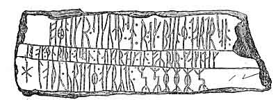 The following is a representation of this remarkable monument which was transported to Copenhagen, and found on examination, to present a complete inscription in Runic characters:--
