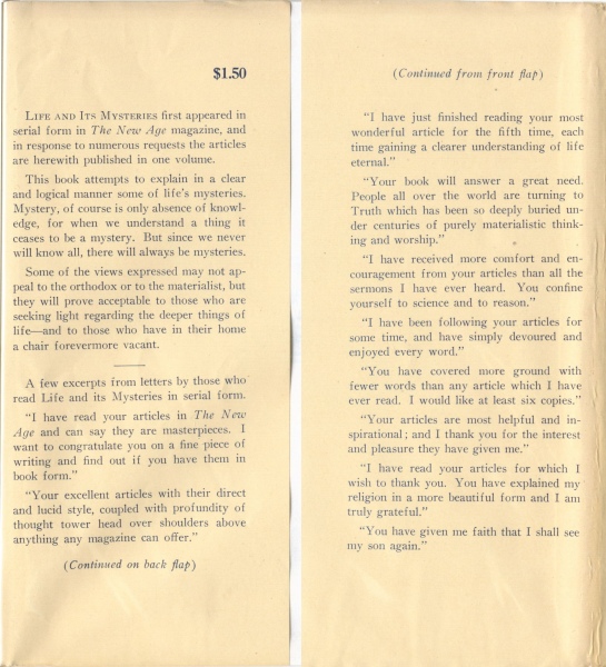 LIFE AND ITS MYSTERIES first appeared in serial form in The New Age magazine, and in response to numerous requests the articles are herewith published in one volume.