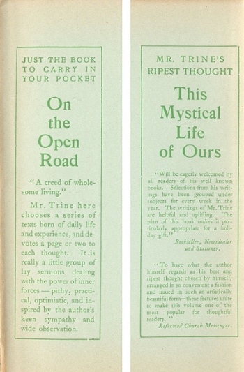 “The Life Books” WHAT ALL THE WORLD ’S A-SEEKING IN TUNE WITH THE INFINITE; or, Fulness of Peace, Power, and Plenty THIS MYSTICAL LIFE OF OURS ON THE OPEN ROAD The “Life” Booklets THE GREATEST THING EVER KNOWN EVERY LIVING CREATURE CHARACTER-BUILDING THOUGHT POWER