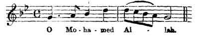 One word as to time. Though I have timed the airs I have given, I am free to confess there was neither metre nor rhythm of any marked character discernible in them; and even in the divisions of the lines or verses, the singer seemed to stop indifferently now at one, now at another word. I have, however, followed in my divisions those given in the book, taking it for granted that the learned author, who has given himself so much pains about the matter, will have chosen the most authentic.
