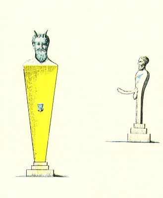 FIGURE No. 1 represents the bust of a bearded Pan placed on a Hermes. In the centre of the latter is the Priapian sign. The head and the phallus are in bronze.
