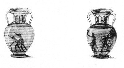THIS graceful langelle represents one of the most extraordinary of the gymnastic games known to the ancients. On one side may be seen two athletes armed with a kind of axe; on the other side the hoop has been substituted for the axe, and the conquered now undergoes the law of the conqueror. While the former stoops to pick up the disk he has clumsily dropt, the latter draws near him and prepares to enjoy his person: this was the law of the game. We may laugh at or despise the vanquished man, but we cannot envy the glory of the conqueror.