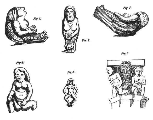 This superstition which, as shown by the Shelah-na-Gigs of the Irish churches, prevailed largely in the middle ages, explains another class of antiquities which are not uncommon. These are small figures of nude females exposing themselves in exactly the same