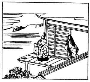 Michi-nobu lived in the tenth century. He is shown in the illustration with his wife on the verandah, watching the day break.