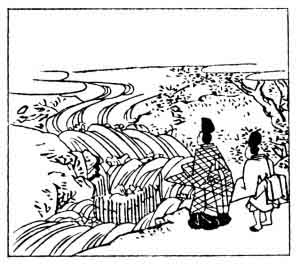 The writer was the son of the author of verse No. 55; he died in the year 1004. The River Uji is in the Province of Omi, and drains into Lake Biwa. Seze is a village on the lake-side, and a suburb of the larger town of Otsu. The poet, looking across the river, can hardly make out the fish-nets on the shore at Seze, because of the rising morning mist.