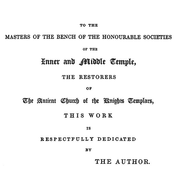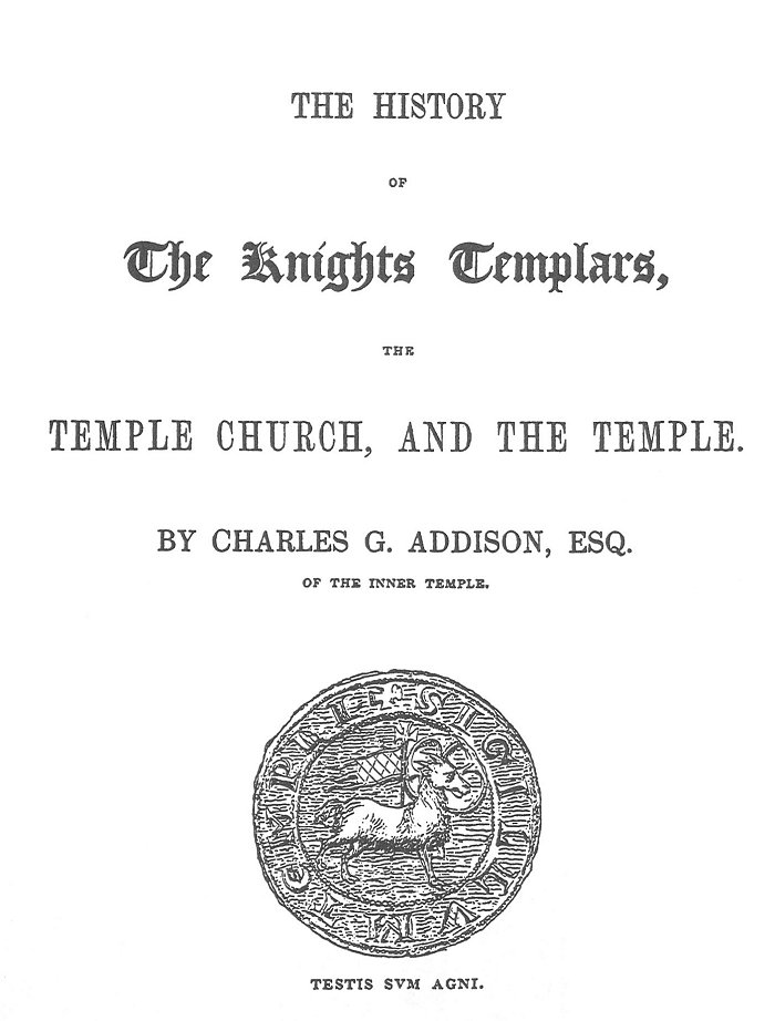 THE HISTORY OF The Knights Templars, THE TEMPLE CHURCH, AND THE TEMPLE. BY CHARLES G. ADDISON, ESQ. OF THE INNER TEMPLE. Longman, Brown, Green, and Longmans; London [1842]