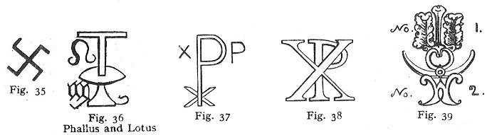 Figure 38 is the monogram of the Saviour. To show the parallel in symbolical forms, we will add some further authorities from the Temple of Solomon at Jerusalem.