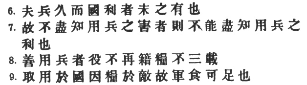 8. The skilful soldier does not raise a second levy, neither are his supply-waggons loaded more than twice. 3