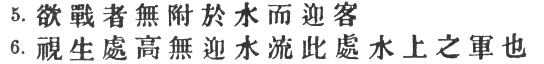 5. If you are anxious to fight, you should not go to meet the invader near a river which he has to cross. 1
