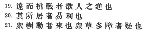 19. When he keeps aloof and tries to provoke a battle, he is anxious for the other side to advance. 1