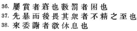 96:2 Wang Hsi's paraphrase, partly borrowed from Ts‘ao Kung, is #. Another reading, adopted by Chia Liu and the T‘u Shu, is # which Capt. Calthrop renders, much too loosely: "Numbers are no certain mark of strength."