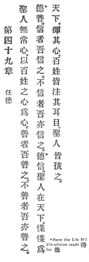 3. The holy man dwells in the world anxious, very anxious in his dealings with the world. He universalizes his heart, and the hundred families fix upon p. 108 him their ears and eyes. The holy man treats them all like children.