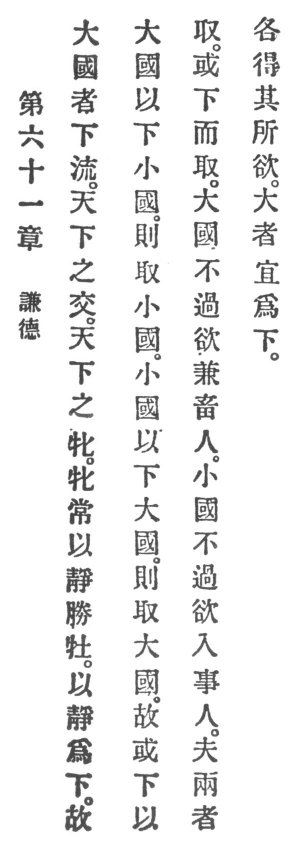 5. A great state desires no more than to unite and feed the people; a small state desires no more than to devote itself to the service of the people; but that both may obtain their wishes, the greater one must stoop.