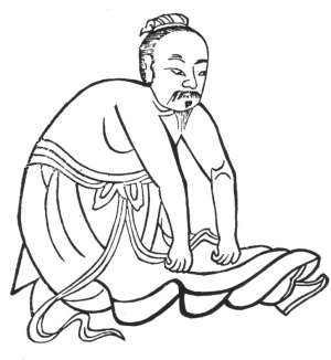 23.—For the Solar Term of the Twelfth Month, named "Slight Cold."—Sitting upright, one hand pressing the foot,