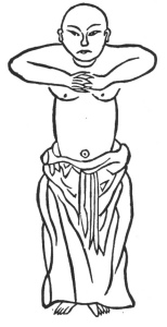 1.—The First Aspect of Wei-to (a Deva or inhabitant of heaven, a deity of Hindoo mythology who protects the Buddhist religion, and three of the four continents into which the world is divided. It is the name of the Bodhisattwa (he who knows and feels) a general under the Four great kings who stands in the front hall of all Buddhist monasteries), offering the Pestle.