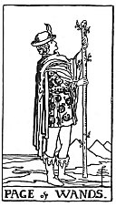 aquarian, i.e. uranian parentage, others are purely mercurial. The pages always cover the meaning of houses of Air, as we have seen the page of the airy element--wands--is the most airy of them all. The interpretation is easy enough, and the renderings are quite correct, with the exception of one item: we can never see this page as a 'stranger' but rather as an acquaintance, a friend, conforming to the connection with the eleventh house. That with the Third house even may bring his personal standing nearer to the querent, viz. as a brother or schoolmate.