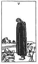 TRADITION: Inheritance, legacy, succession, gift, testament, transmission, tradition; all of them "not corresponding to expectations; with some it is a card of marriage, but not without bitterness or frustration." (W.) Reversed: Family, forefathers, ancestry. Liaison, alliance, affinity, acquaintance, consanguinity. Race. "It is a card of loss." (W.)