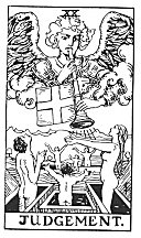Herein is the intimation of a significance which cannot well be carried further in the present place. What is that within us which does sound a trumpet and all that is lower in our nature rises in response--almost in a moment, almost in the twinkling of an eye? Let the card continue to depict, for those who can see no further, the Last judgment and the resurrection in the natural body; but let those who have inward eyes look and discover therewith. They will understand that it has been called truly in the past a card of eternal life, and for this reason it may be compared with that which passes under the name of Temperance.
