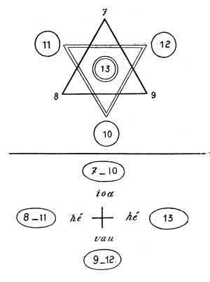 These three terms form the last ternary, the ternary of transition between the major arcana and the minor arcana, a ternary which corresponds to the second he, and which may be thus represented--