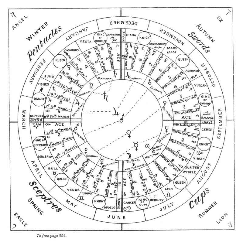 Egyptian Astronomy--The Four Seasons--The Twelve Months----The Thirty--six Decani--The Planets--Absolute Analogy with the Tarot--Figure containing, the Application of the Tarot to Astronomy--Key to the Astrological Works of Christian----Oswald Wirth's Astronomical Tarot.