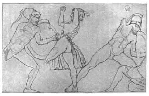 SECTION OF MONSOLUS FRIEZE, COMBAT OF GREEKS AND AMAZONS. BRITISH MUSEUM.