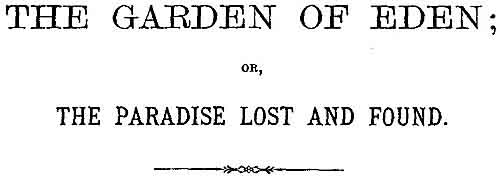 [paragraph continues] Garden of Eden, there so graphically set forth--whether a spot of ground situated somewhere on the surface of the earth, or something altogether different--something, perhaps, that it may seldom or never have been suspected of being, and yet something that the language of these chapters plainly states it to have been; or, as may prove to be the exact truth, something other than which it is impossible to derive from the language in which the description is clothed. For instance, if the various parts of a thing be described as parts, when the parts are put together, that which they form must be the real thing which was in the mind of its relator. Therefore, if when we shall take the several things described by Moses and put them together, they shall be found to constitute something widely different from a spot of ground on the surface of the earth, why then we shall be forced to conclude that it was not such a spot that Moses had in view when he wrote the second chapter of Genesis; and therefore, also, that the Garden of Eden must be sought elsewhere than in a geographical location.